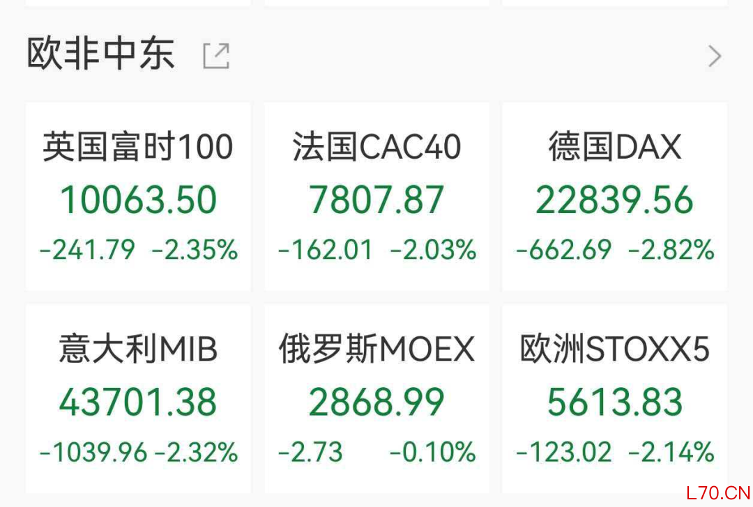 周四(3月19日),欧美股市集体收跌,德国、法国、英国股市均跌超2%。黄金、大型科技股普跌。