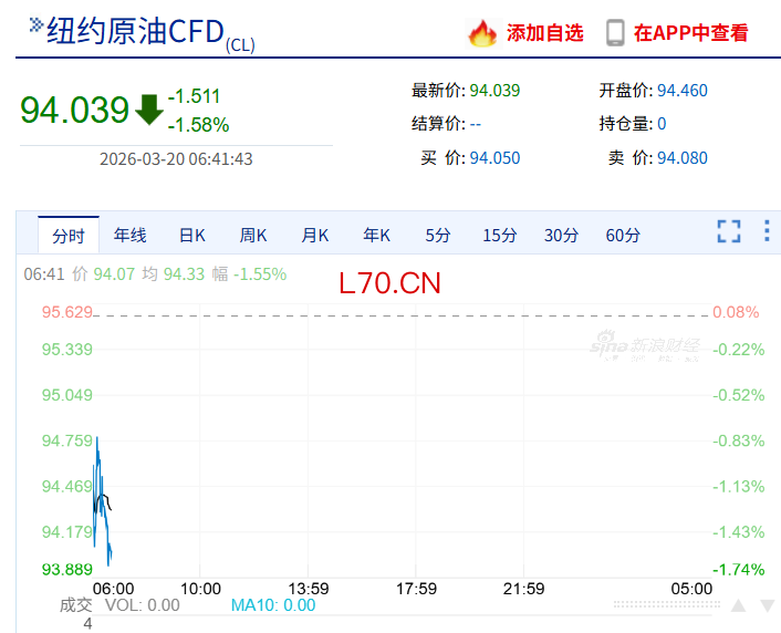 国际油价下挫。截至发稿,纽约原油跌1.58%,报94.03美元/桶。此前,19日收盘,纽约原油跌0.19%收于每桶96.14美元;布伦特原油涨1.18%,收于每桶108.65美元。