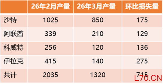 供应损失:海湾四国3月crude损失超过700万桶日。