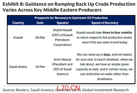 两周的临时停火还不足以让油田开始完全恢复生产。目前官方口径来看,沙特恢复生产大概需要2-4周,科威特和伊拉克可能需要3-4个月。