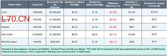 目前网传的已实行方案是200万美金/船,换算到vlcc船型,对油价的成本抬升至少为1美元/桶,小船型更贵。