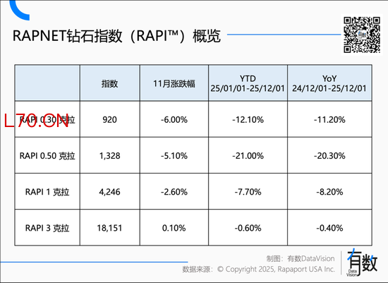 首当其冲的是钻石,到2025年12月,0.5克拉的天然钻石价格一年内下挫20% [1]。一颗永流传的信仰崩塌,从消费市场传导到了上游。