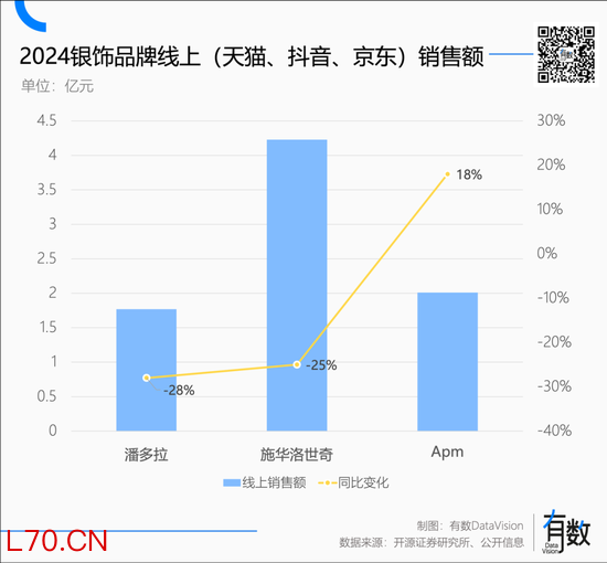 当然,隔壁的水晶也没好到哪去,2024年,潘多拉与施华洛世奇这对难兄难弟,在国内电商的销售额分别下降28%与25%。