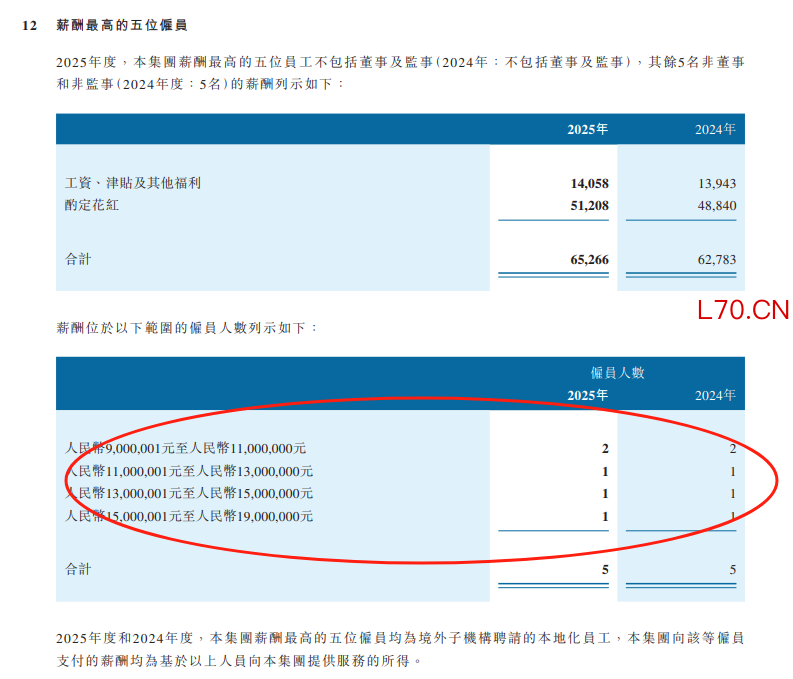 中信证券表示,2025年度和2024年度,本集团薪酬最高的五位雇员均为境外子机构聘请的本地化员工,本集团向该等雇员支付的薪酬均为基于以上人员向本集团提供服务的所得。