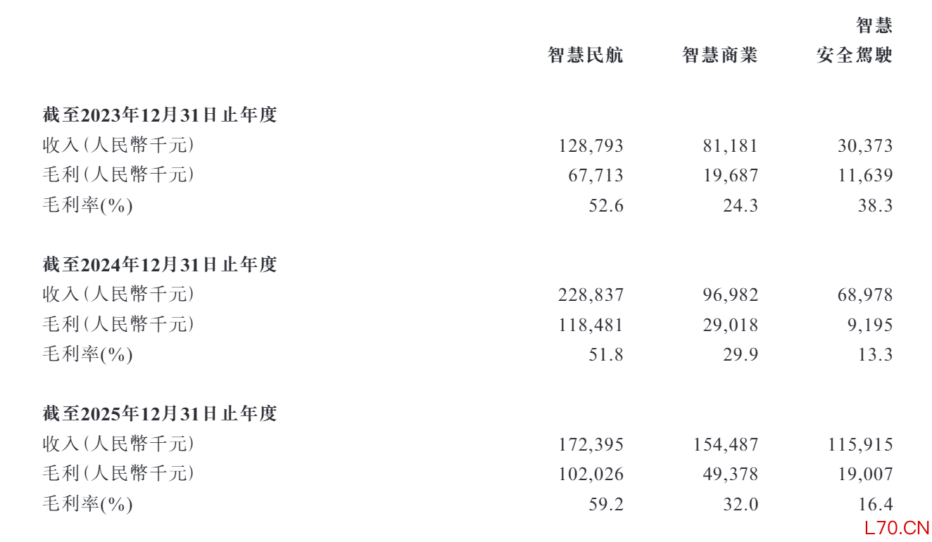 一方面,瑞为技术智慧安全驾驶及智慧商业的收入虽持续增长,但毛利率较低,2025年分别为16.4%、32%。其中,智慧安全驾驶业务的毛利率较2023年暴跌22个百分点,仅是同期智慧民航业务毛利率的四分之一左右,显著拉低整体盈利水平。2023年至2025年,公司综合毛利率从40.8%降至37.7%,累计下滑3.1个百分点。