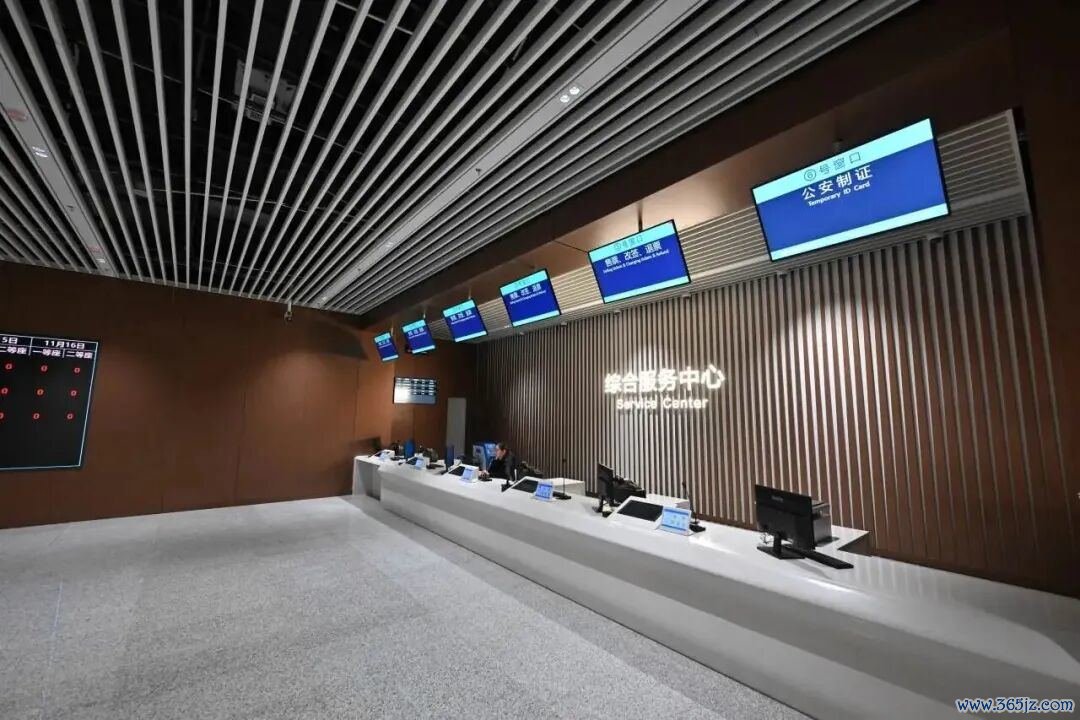 位于地下一层的综合信息服务中心内,共有6个窗口,未来游客可在此办理售票、改签、退票、办理临时身份证明等业务。服务中心内的自助售票机正在调试之中。