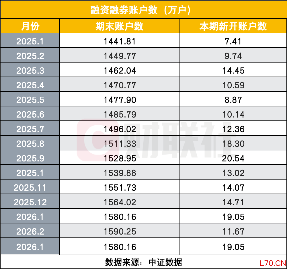 不仅是普通股票账户,融资融券账户的新开数据同样释放出积极信号。