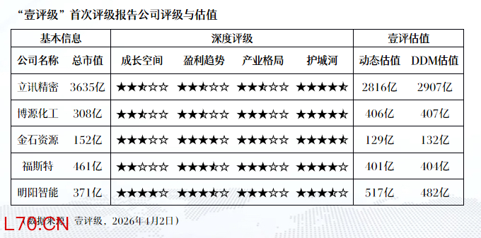 壹评级发布立讯精密、博源化工等五家公司首次评级报告